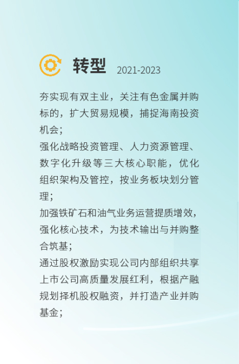 戰(zhàn)略定位致力成為一家以戰(zhàn)略性資源為核心,具有國(guó)際影響力的產(chǎn)業(yè)發(fā)展集團(tuán) -